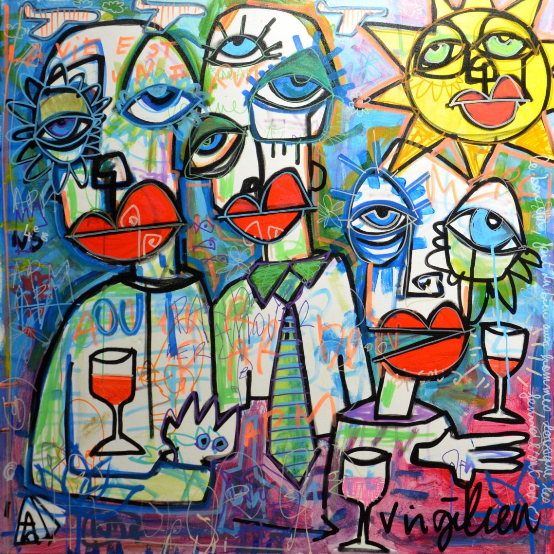 Mon influence trouve son origine dans la culture Street art, puis, je me suis dirigé, progressivement, vers le cubisme et l’art naïf.