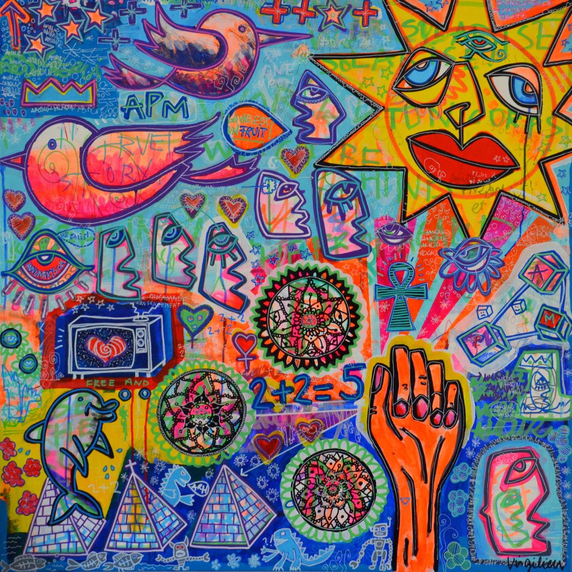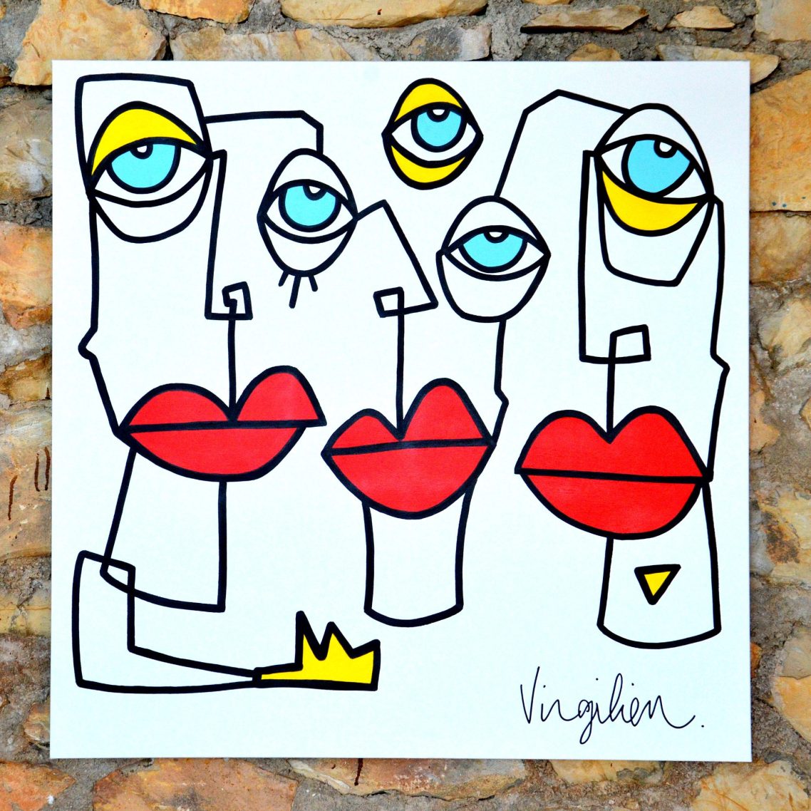 Mon influence trouve son origine dans la culture Street art, puis, je me suis dirigé, progressivement, vers le cubisme et l’art naïf.